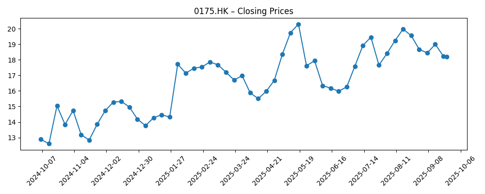 Geely Automobile Holdings (0175.HK) enters September 2025 with improving scale but tight margins, setting the stage for a cautious three‑year outlook to September 2028. The company reports trailing revenue of 271.69B, net income of 15.06B and a profit margin of 5.57%, supported by total cash of 69.11B against total debt of 24.11B. Quarterly revenue grew 17% year over year, but quarterly earnings growth declined 60.80%, highlighting pricing pressure and mix effects. Shares closed near 18.20, up 73.38% over 12 months, with a 1.81% forward dividend yield and a 20.44% payout ratio. With a current ratio of 0.95, operating cash flow of 22.59B and levered free cash flow of 37.37B, we focus on margin trajectory, product competitiveness and capital discipline as key determinants of returns.