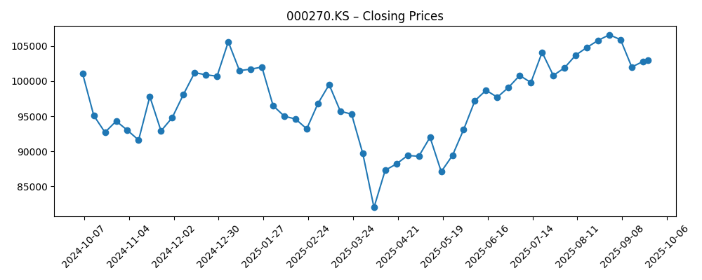 • Share price: ~₩103,000 (late Sep); 52‑week ₩81,300–₩113,200; 50‑day MA ₩103,524; 200‑day MA ₩97,473.5; Beta 0.76.