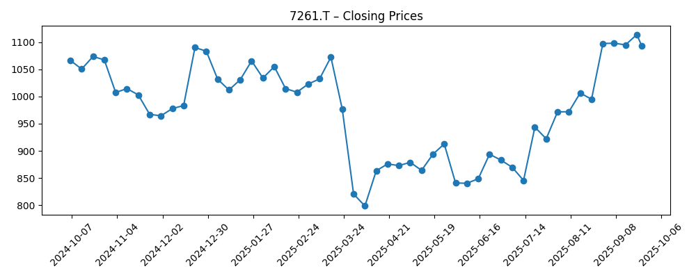 Mazda Motor Corporation’s stock has rebounded toward its 52‑week highs after a sharp late‑March selloff, closing at ¥1,093 on September 24, 2025. The cash-rich balance sheet (¥1.01T cash vs. ¥716.59B debt) and positive free cash flow (levered FCF ¥102.44B) underpin a 4.94% forward dividend yield ahead of the September 29 ex‑dividend date. Fundamentals remain mixed: trailing 12‑month revenue is ¥4.91T, but quarterly revenue growth is down 8.8% year over year, the operating margin is negative (‑4.19%), and net margin is slim (0.45%). Valuation screens as value‑oriented with price‑to‑book of roughly 0.4x and price‑to‑sales near 0.14x based on reported metrics. With a low beta (0.48) and liquidity support (current ratio 1.52), the setup is about execution—stabilizing sales and repairing margins—against an industry backdrop that remains uncertain into the fall selling season.