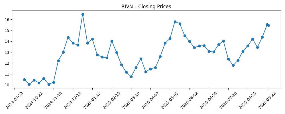 Rivian stands at a hinge moment: revenue is growing, operating cash flow has flickered positive, and liquidity is ample, yet losses remain deep and execution risk is real. The next three years will likely be defined by improving unit economics, evidence that the Volkswagen collaboration yields tangible cost and software benefits, and a disciplined R2 rollout. If management converts today’s 12.5% revenue growth into sustained gross profit and steadily narrows operating losses, the equity story should de‑risk and broaden its shareholder base beyond momentum and short‑term traders. Conversely, delays, heavier discounting, or escalating cash burn would rekindle financing worries and keep valuation capped. With shares near $15.46 and a 52‑week range of $9.50–$17.15, the market is pricing a mix of promise and skepticism. Clear, repeatable operating improvements are the path to a durable re‑rating.