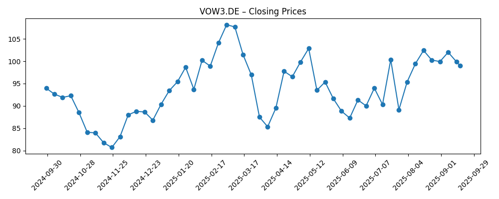 Volkswagen enters the next three years balancing income appeal with execution risk. The dividend yield of 6.37% provides near‑term support, but thin reported margins and negative levered free cash flow underscore the need for consistent delivery on cost, product, and software targets. Revenue has softened (-3.0% YoY in the latest quarter) and earnings are under pressure, yet scale, brand breadth, and operational levers remain meaningful. If management can stabilize margins, improve cash conversion, and pace investments with clearer returns, the shares could shift from range‑bound trading toward a gradual re‑rating. Should pricing pressure or program delays persist, the stock may continue to lag broader indices despite its income profile. For investors, monitoring quarterly margin progression and cash‑flow inflections is paramount; those signals will likely dictate whether today’s valuation and yield translate into stronger total returns by 2028.